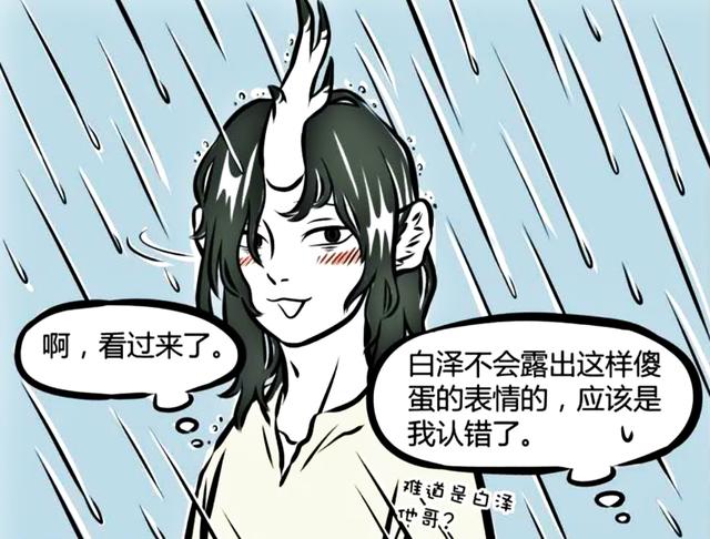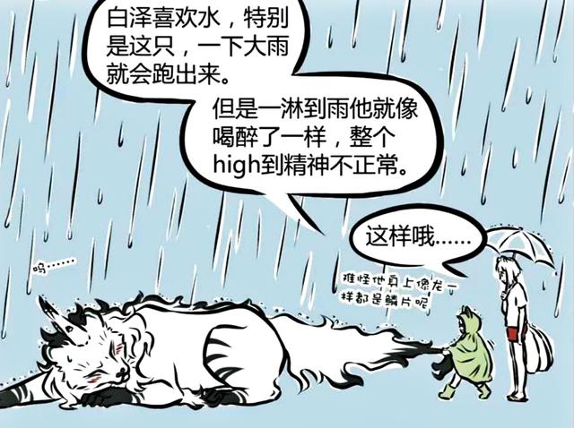 这一切,都是这场雨造成的。《非人哉》中有个短篇,说的是白泽与水之女神的交情,白泽被观音菩萨逐出家门,与水之女神偶遇。二人一见钟情,结为好友,还在观世音菩萨的家中玩起了水战。原来二人能走到一起,还得归功于他对水的喜爱。