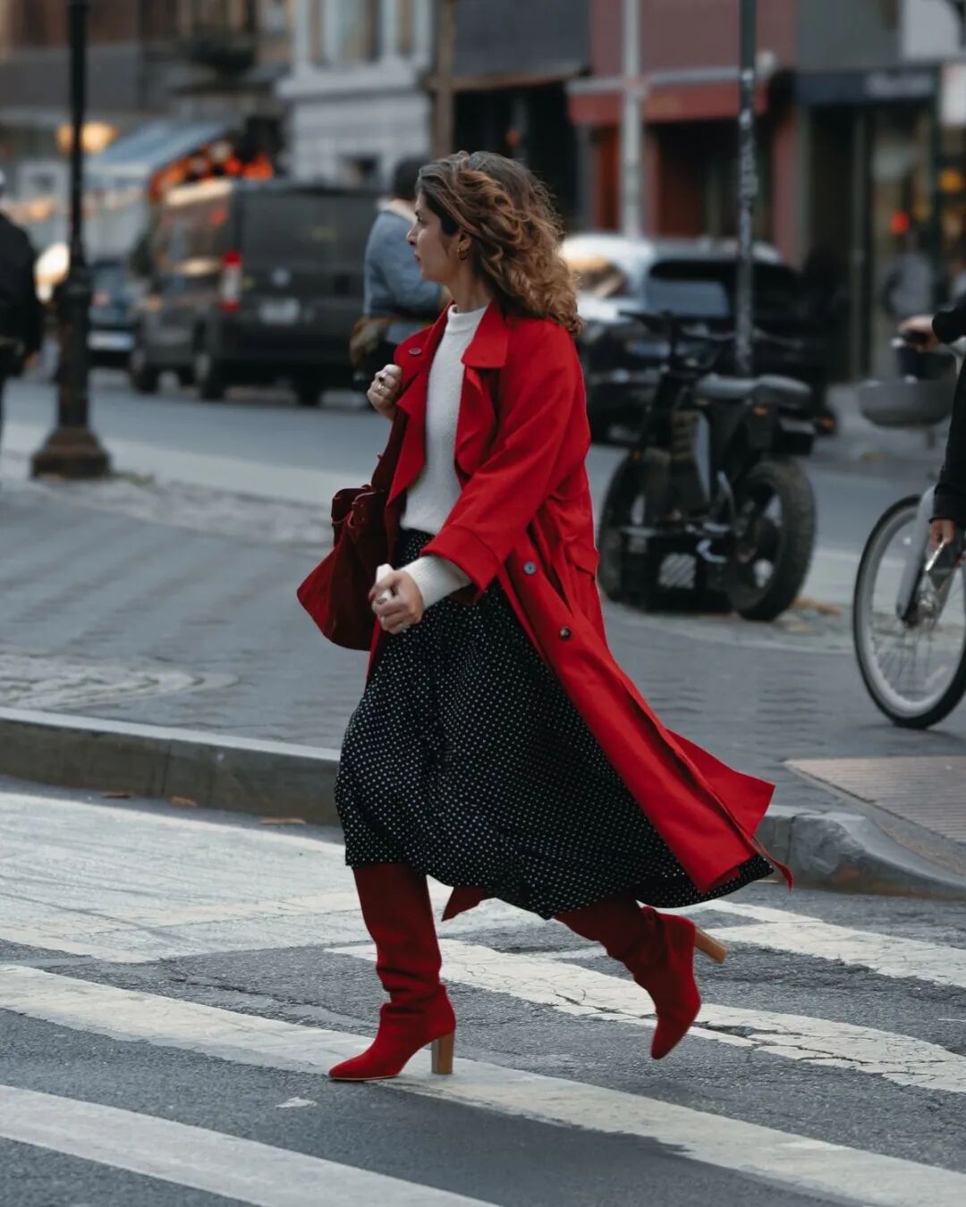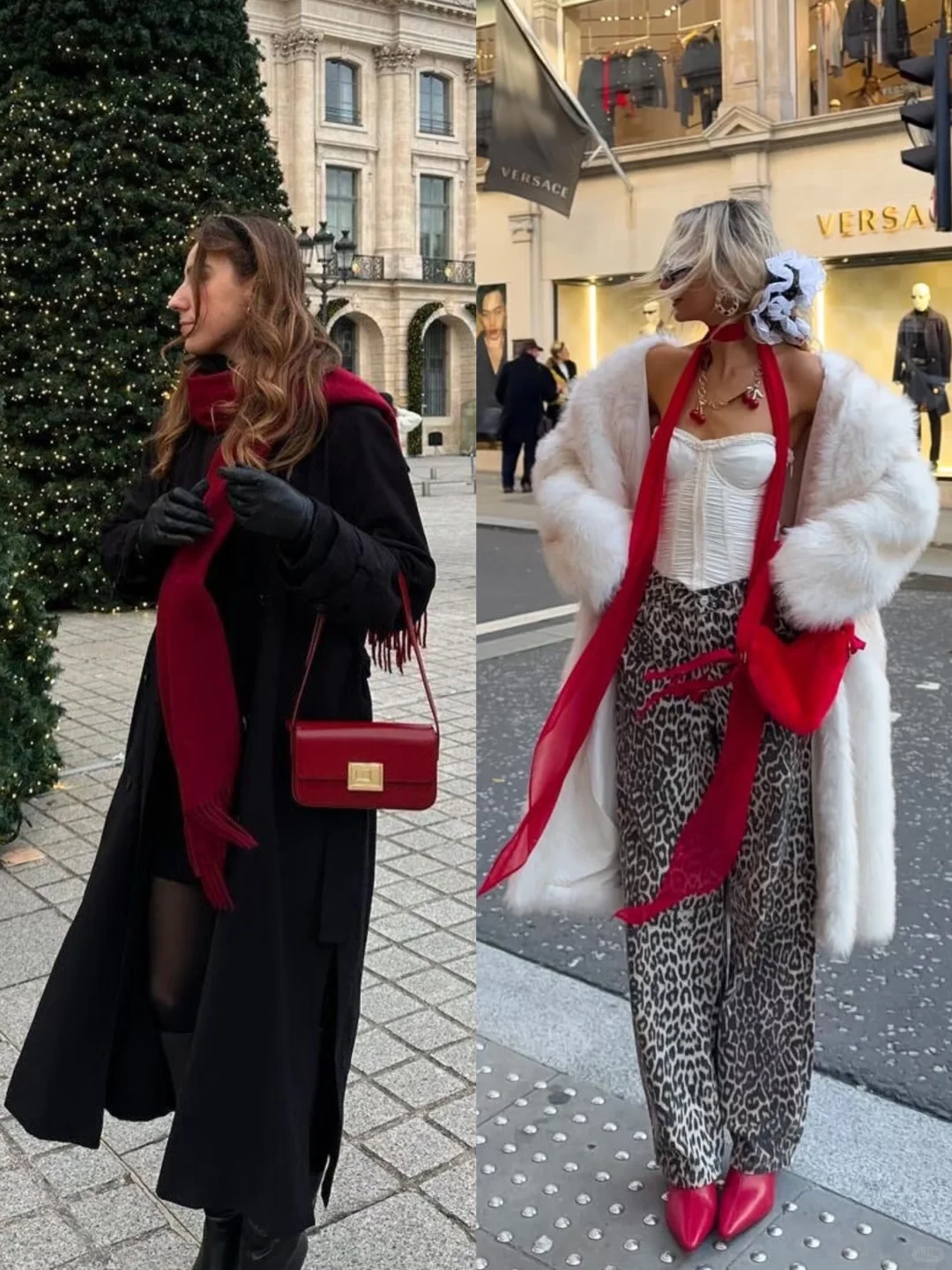 一抹圣诞红加入穿搭,带着直抵人心的鲜活,为裹满厚衣的冬日穿搭注入灵魂。