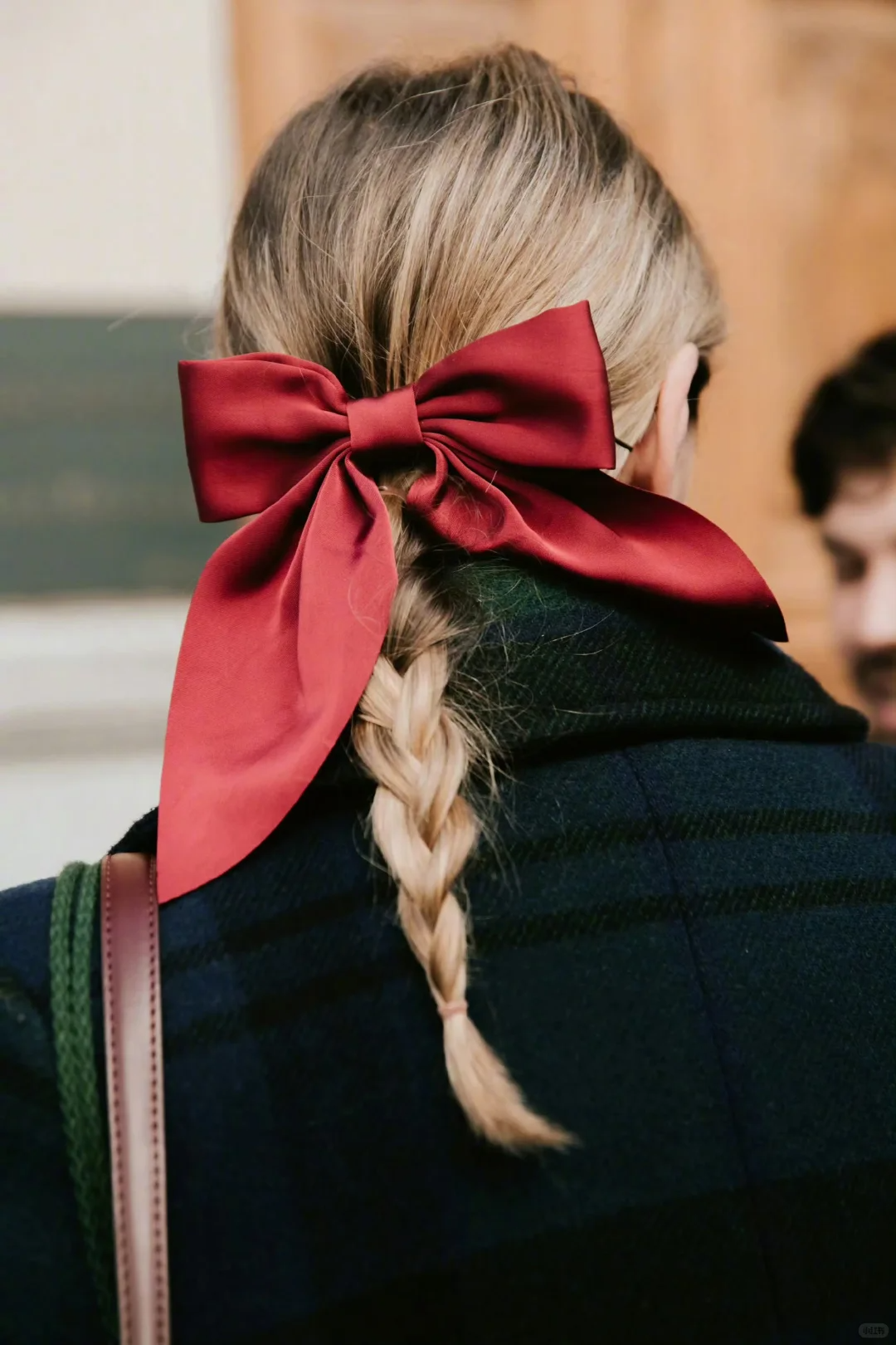 红色蝴蝶结,以小巧精致的姿态,为冬日穿搭注入节日的甜美元气。它无需占据过多视觉空间,却能像圣诞树上的彩灯,在细节处点亮造型,适配温柔知性、甜酷灵动等多种风格,让你轻松拿捏圣诞的仪式感