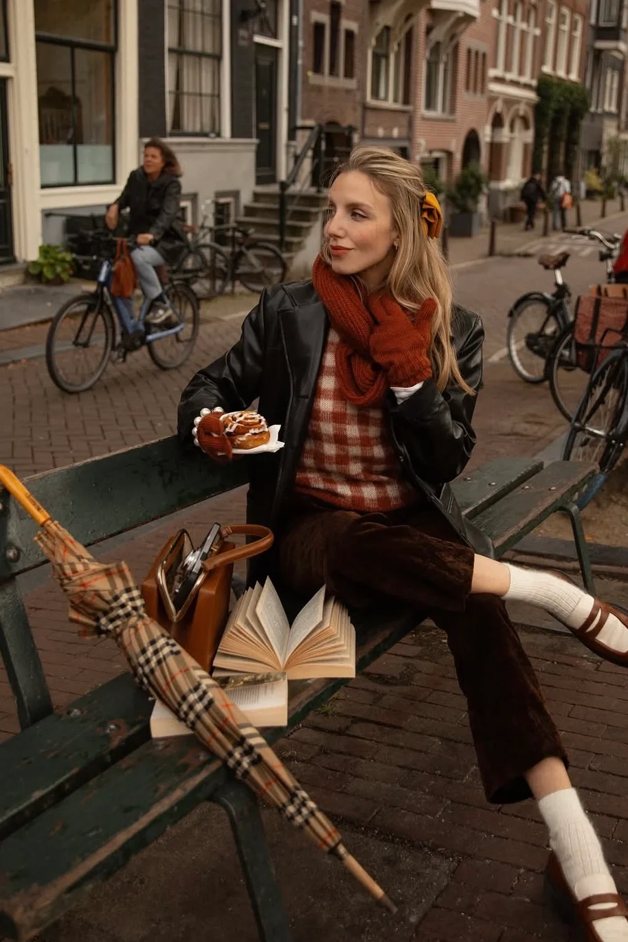 用红色和咖色来打造圣诞风穿搭,既显贵气又充满活力。比如浅咖大衣与正红毛衣,配一条红色格子围巾,热烈却不显俗艳。