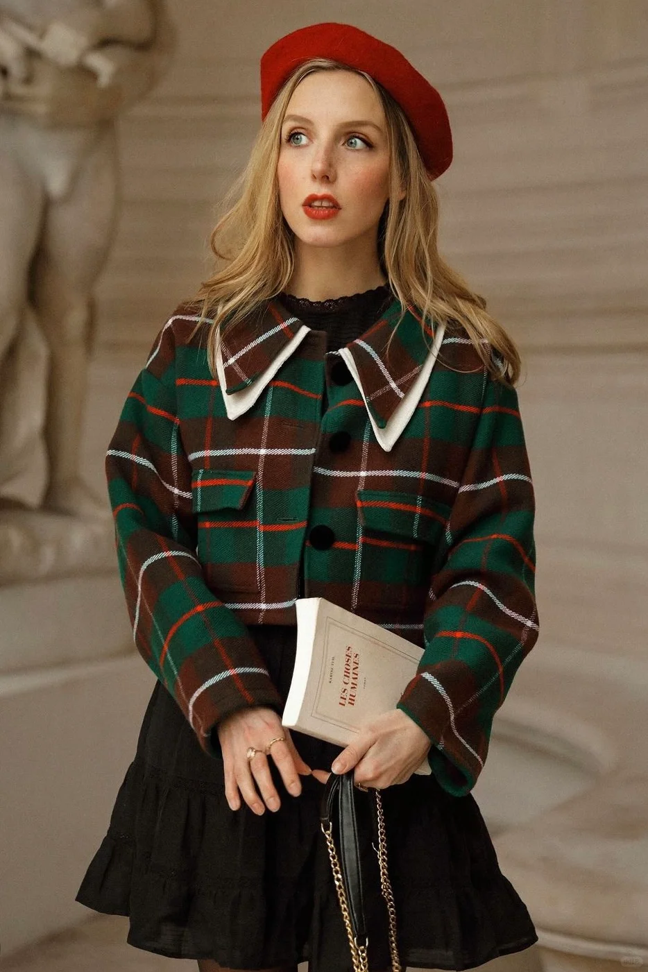 红绿格子超级适配圣诞氛围感,交织的线条就像礼物包装绳,红色是壁炉里跳跃的火焰,绿色是冬青叶的脉络,温暖又生机勃勃。