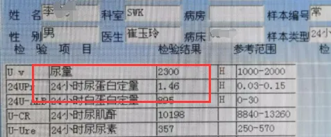 赶紧到医院检查,一查不要紧,尿蛋白4+,直接爆表了,医生当地建议住院。