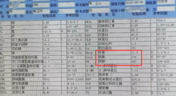 患者双下肢脚踝水肿仍然没有消除,复查抗磷脂酶抗体仍然为阳性,24小时尿蛋白定量3.26克,肾功能检查血肌酐376umol/L。病情依然比较严峻。