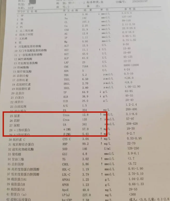 尿蛋白一天天在流失,长期肾细胞的损伤,直接导致了肾功能肾衰竭,检查血肌酐一度升高到了409umol/L。
