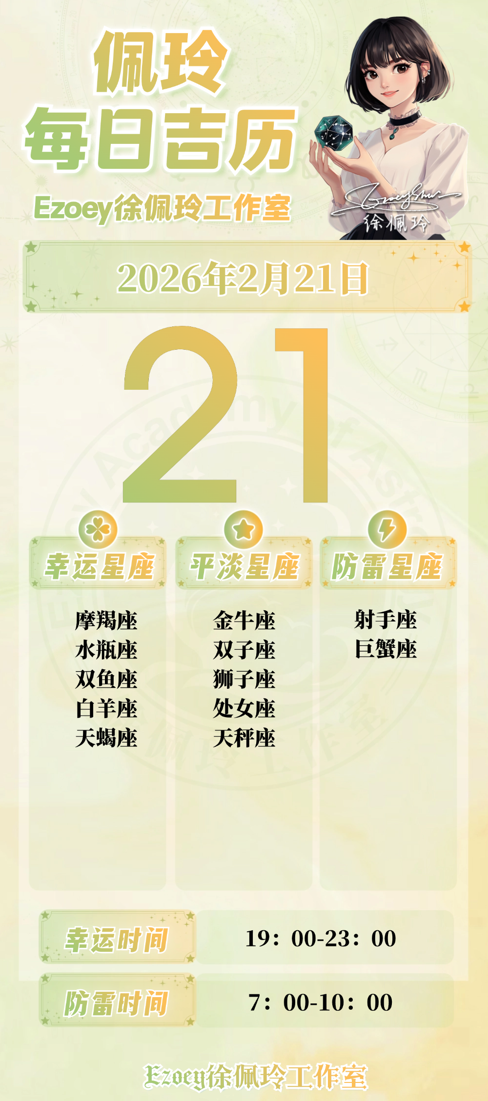 【2.21日播报】温馨梦想日 幸运星座:摩羯座、水瓶座、双鱼座、白羊座、天蝎座——Ezoey徐佩玲26年星座播报