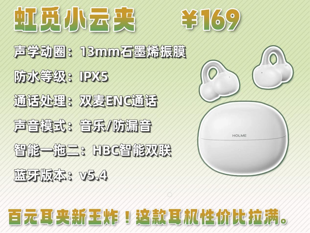 热门耳夹式耳机推荐!虹觅air2 小云夹售价:169 元