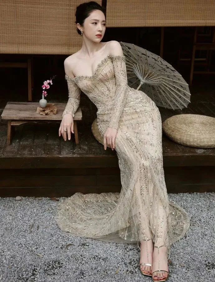董璇此前参加一次活动,身穿一件抹胸鎏金长裙,腰部修身剪裁设计,完美的勾勒出腰身曲线,而且从侧面来看,董璇的腰臀比也是非常的完美。
