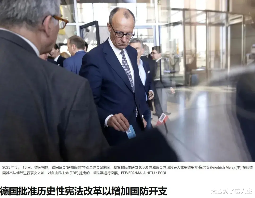 它通过之后,未来德国国防和安全支出将不再受到赤字支出限制。