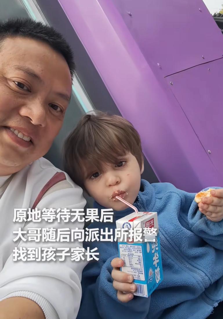 大叔跟着孩子站在原地等了好久,都没有看到这个孩子的父母来找孩子,没有办法只好向派出所报警,最终找到了孩子的家长。