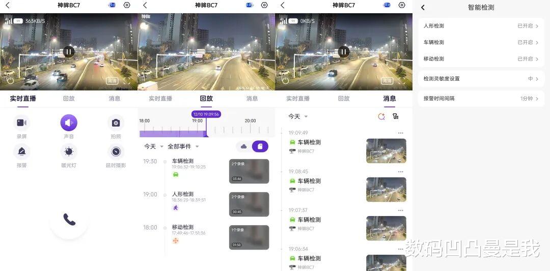 比较好玩的是神眸BC7搭配APP还能进行延时摄影,预设房屋装修、家里的一天、学生日常、家有萌宠四种场景,也可自定义设置时间段,也算是提供了别样的记录方式。