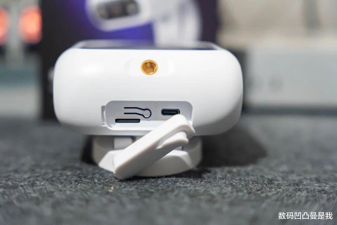 机身后侧有一个固定螺孔,可以搭配支架进行安装。机身电源、TF卡槽、USB-C充电口都在机身下方,已经做了密封防水处理。出厂预装TF卡,不需要额外购买,橡胶密封盖上还专门留出了充电线孔位,考虑蛮周全。