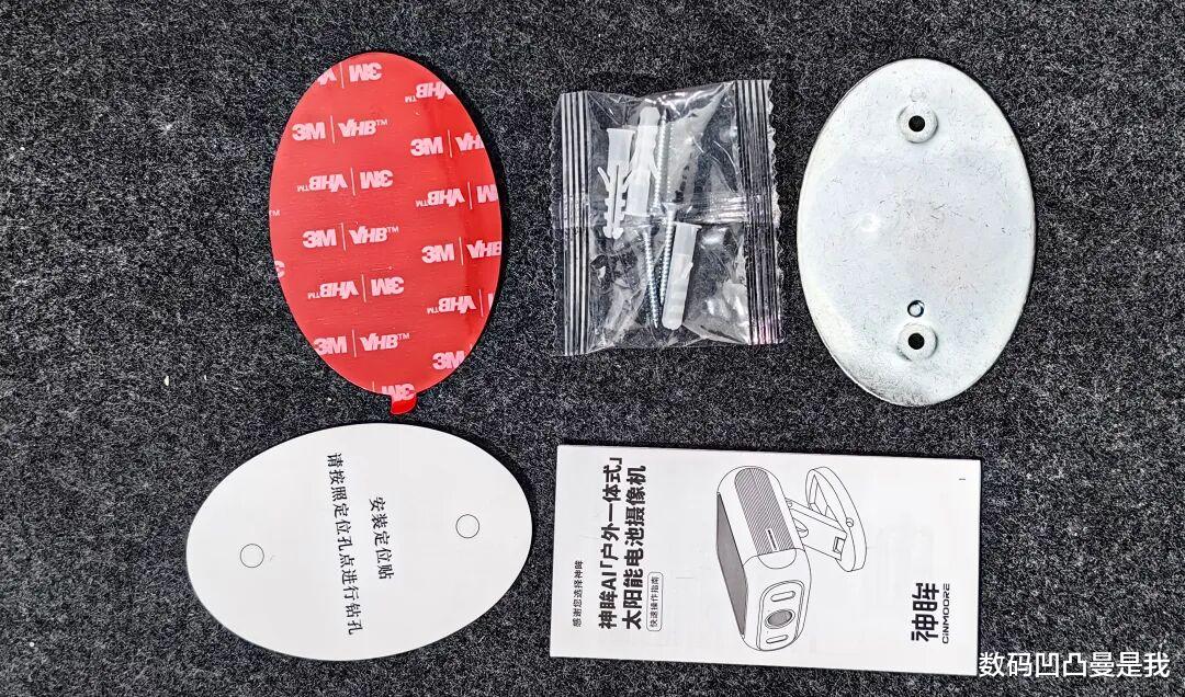 随包装附带引磁片、打孔定位贴、膨胀螺丝等,借助这些配件就可以在没有磁力的墙上安装,引磁片和摄像头底座的吸力非常大,不用担心掉下来。
