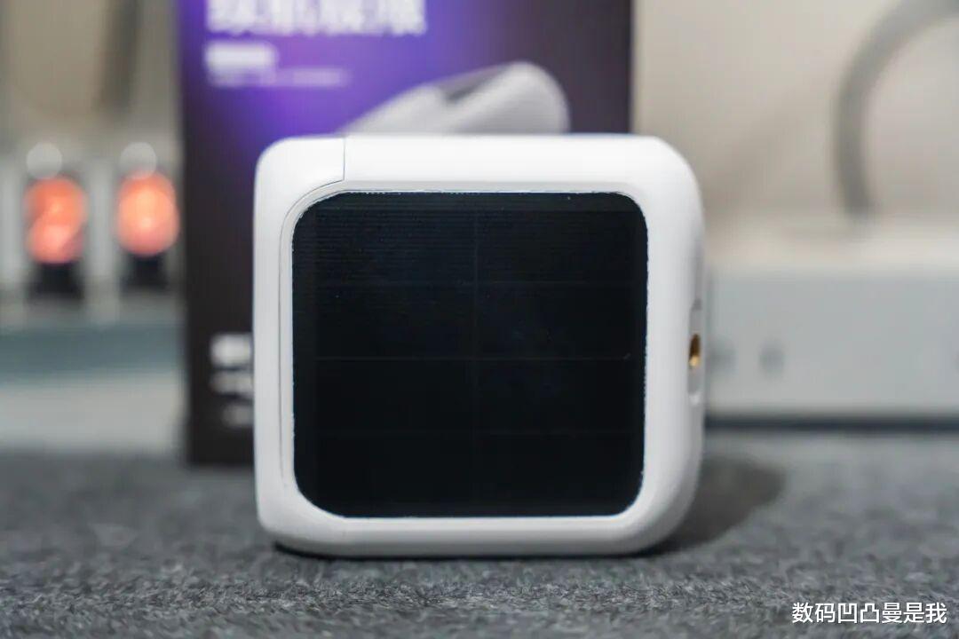 整个机身除了顶部的太阳能板和前方的摄像头区域,基本都是白色,造型方正,边缘圆润,两侧可以看到品牌名称LOGO,颜值还是蛮高的。