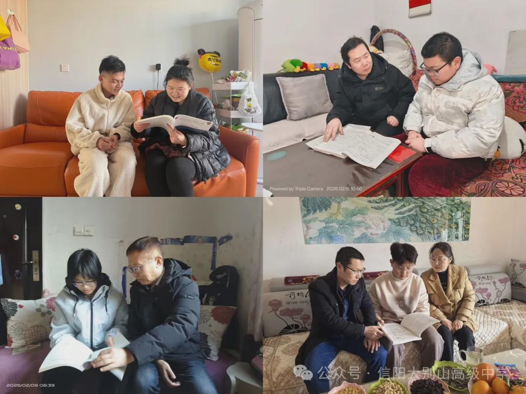 岁暮天寒,温情不减;家校同心,共育花开。为进一步夯实家校协同育人根基,倾听家长心声,传递教育温度,信阳大别山高级中学严格按照2026年寒假家访工作实施方案,于2月12日—3月1日开展“线上 十 线下”全维度家访主题活动。全校教师带着责任、怀揣爱心,走进千家万户,用脚步丈量责任,用真心守护成长,让这个寒假充满温暖与力量。