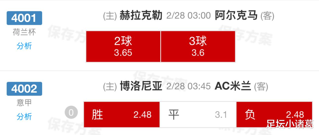 综合分析:两队本赛季共有一次正面交手,博洛尼亚在少打一人且对方连丢两粒点球的情况下凭借一粒点球和AC米兰握手言和;两队近6轮联赛所面对的相同球队有帕尔马、恩波利和都灵,博洛尼亚在客场以0:2的比分爆冷输给了帕尔马、在客场以1:1的比分被恩波利逼平、在主场以3:2的比分险胜都灵,AC米兰在主场以3:2的比分战胜帕尔马、在客场以2:0的比分完胜恩波利、在客场以1:2的比分惜败都灵。