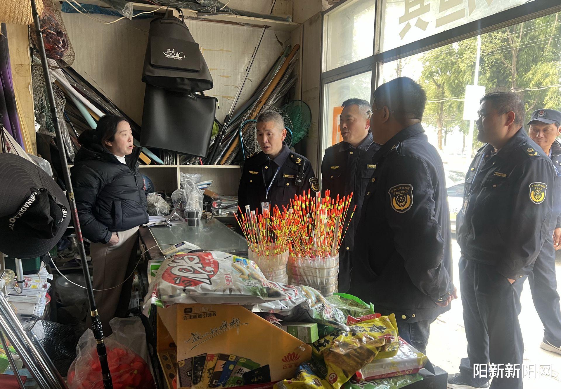 陆上监管同样紧锣密鼓,执法人员兵分多路,开启全方位排查模式,从源头斩断非法捕捞的产业链。在辖区的渔具店里,执法人员逐一翻看销售台账,仔细检查货架上的每一件渔具,坚决杜绝电鱼机、可视锚鱼器等禁用渔具流入市场。“这些东西就是破坏长江生态的‘凶器’,咱们必须守好这道关,不让一件禁用渔具卖出去。”面对商户,执法人员一边严查,一边耐心宣讲禁捕政策,引导商户合法经营。
