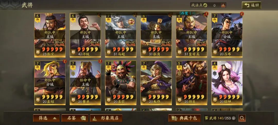 Tips1:在霸王讨逆剧本当中首发SP马超的人很多,有的玩家咔咔鏖战,有的玩家经常就是被无损杀马队吃掉。 我认为现在SP马超应对霸王讨逆的前期环境,最好的配置如下: