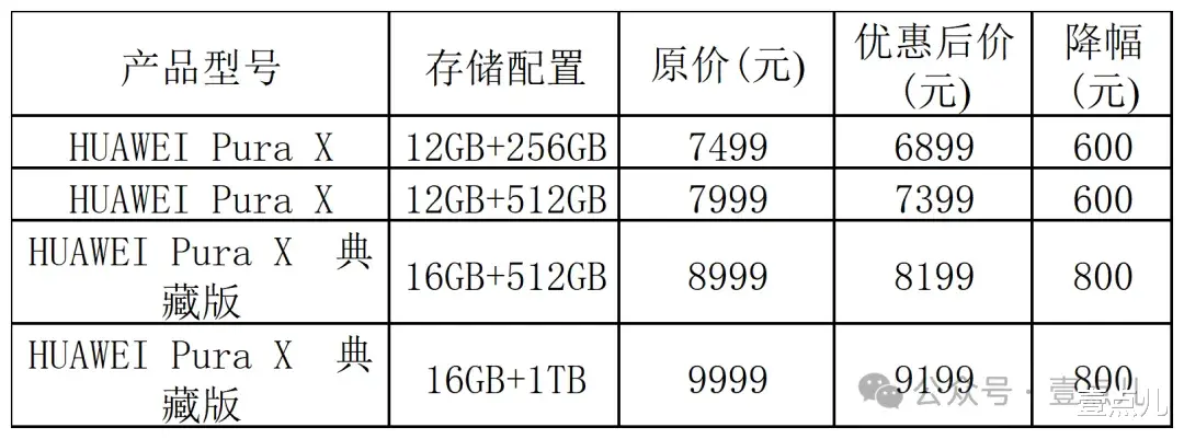 Pura X系列在此次新春优惠中最高降幅达800元,标准版和典藏版均有不同程度降价。