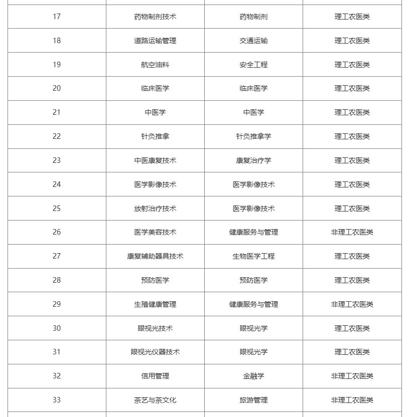 这 48 个专业中,31 个归属理工农医类,集中于农林生产、工程技术、医药卫生三大领域。农林领域的种子生产与经营、茶叶生产与加工技术等,分别对应农学、茶学等本科专业,实现农林人才培养纵向贯通;工程技术领域涵盖国土资源调查与管理、飞行器维修技术等,对接地质工程、飞行器制造工程等本科专业,技能培养与专业方向高度契合;医药卫生领域包含临床医学、医学影像技术等,部分细分专业如放射治疗技术、眼视光仪器技术虽名称不同,仍精准对应核心本科专业,保障医学人才培养的连续性。