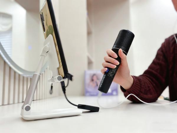 户外嗨歌:稳定与趣味的结合:周末和同事去公园小聚,我将U8连接到便携音箱上,插上手机开启K歌模式。心形指向收音果然名不虚传,即使在稍有风的环境下,拾音依然稳定,风声干扰不明显,还能清晰捕获我的歌声。加上一点预设的“混响”,我的歌声在草地上回荡,朋友说终于不再“要命”了,秒变氛围担当。而且它的便携性真的很棒,放在包里完全不占地方,走到哪唱到哪。