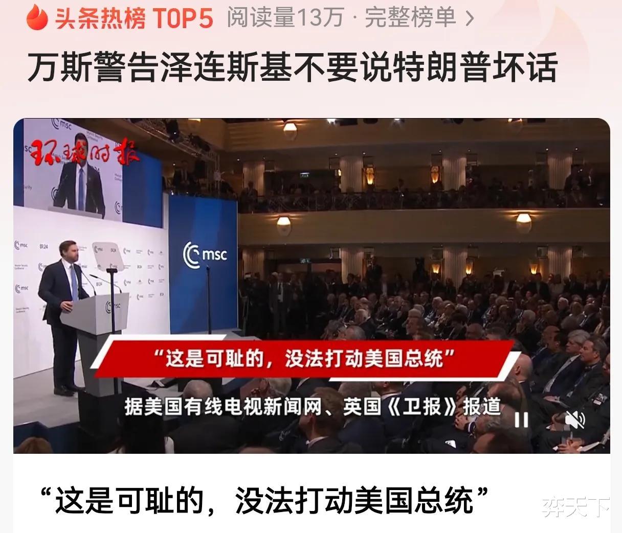 美国副总统万斯很有立场,不久之前警告欧洲,说他们的敌人不是俄罗斯和中国,而在于自己内部。其后,万斯又抛出惊人言论,在盛赞特朗普之后,认为和特朗普比肩,真正元首名副其实的,此外只有中国、俄罗斯和朝鲜。
