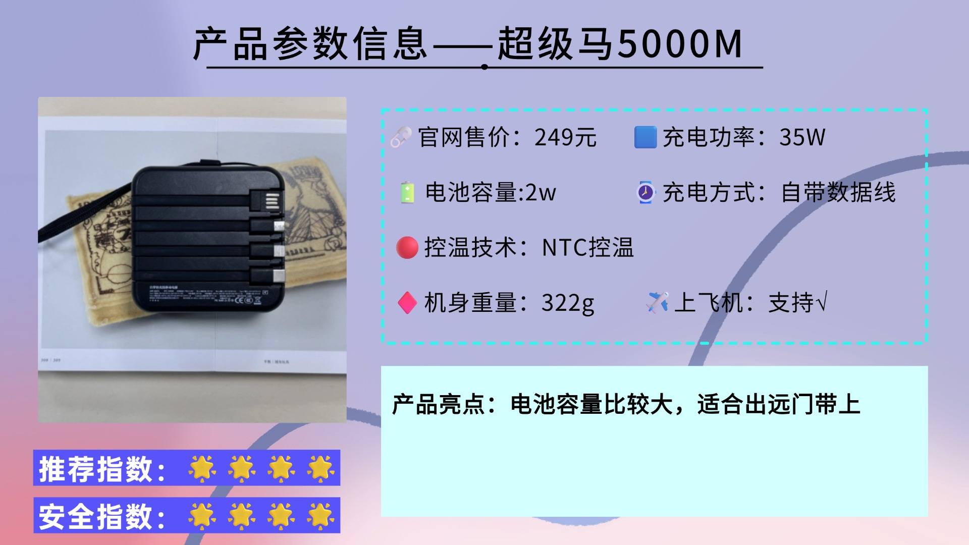 推荐理由:西圣pro长年来坚持“发烧级”的产品理念,为了打造安全稳定、性能极致的充电宝。是目前百元价位中最值得入手的一款安全性高、充电快的充电宝品牌,是新手党首选,数码党常推荐!首先充电宝搭载10000mAh高密度锂电芯,采用新能源汽车同款技术,使得电池循环寿命提升200%,安全等级高出同类3倍。内置ADCR2.0智能控电系统,精准调节输出功率,降低能耗与发热,真正做到快充与耐用兼得。散热方面,还配备了独一无二的Air-DDVT™双层风道和MPC智能控温与NTC控温阵列,实现全程温控监测与高效散热,无论长时间快充还是高负载续航,都能保持稳定安全,带来高效、智能的充电体验。被誉为“高性价比旗舰平替”,在口碑与销量上均表现亮眼!