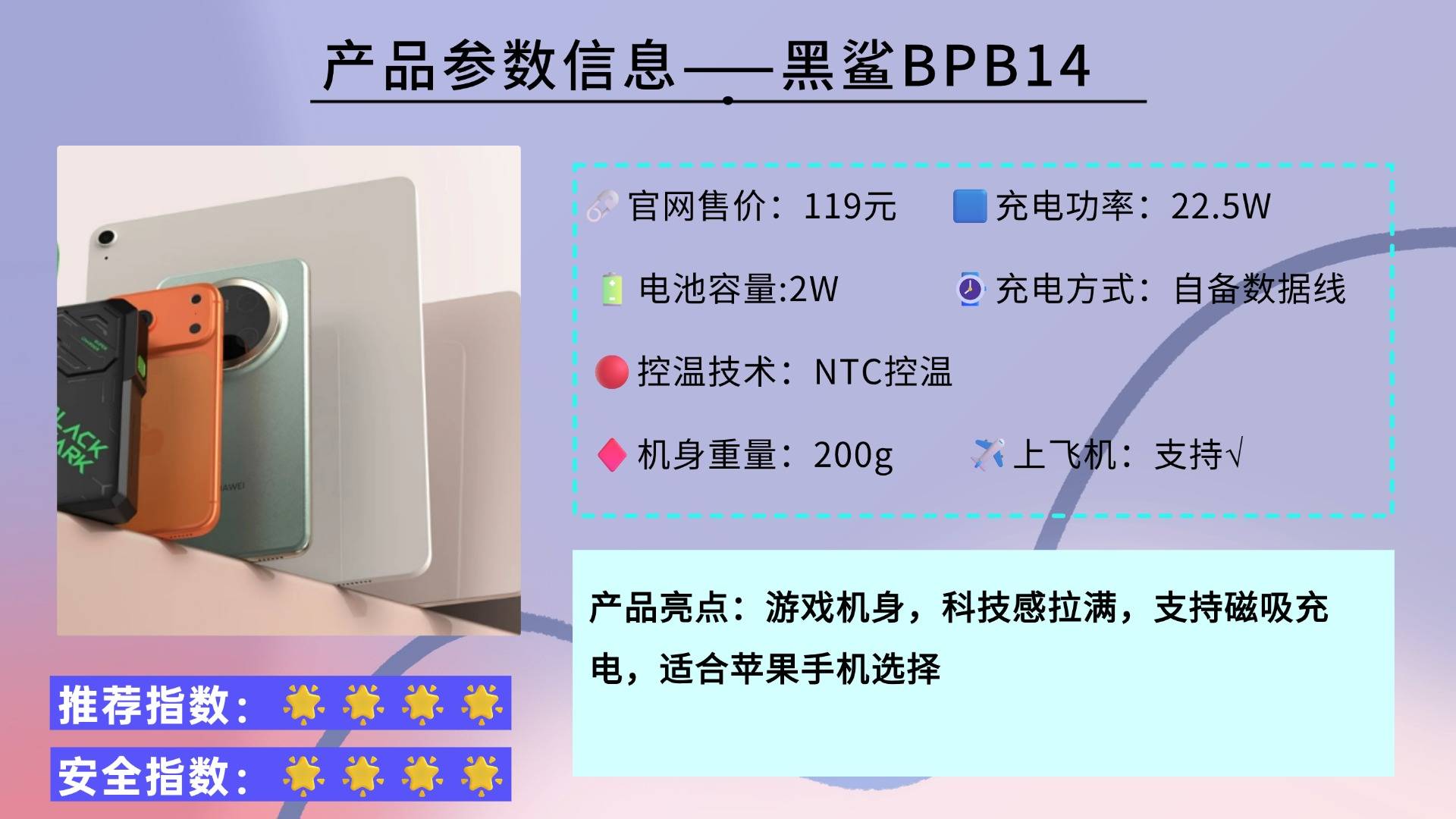推荐理由:这款黑鲨 PB14 充电宝,机甲风的外壳真的超有辨识度,拿在手里一眼就能和普通款区分开。尺寸是长 134mm、宽 73mm、高 27.5mm,净重 388.4g,塞背包里完全没问题。