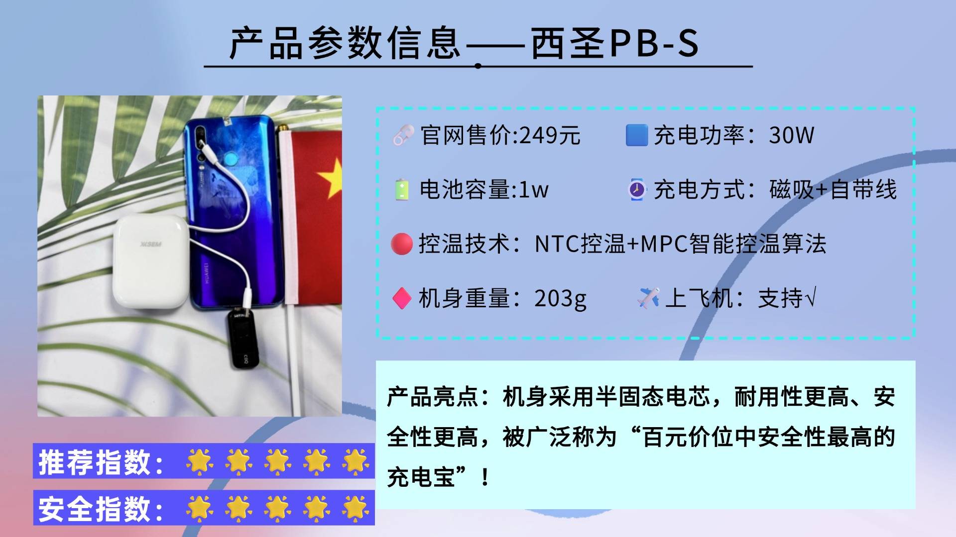 推荐理由:西圣PB-S充电宝在百元档中口碑极佳,被誉为“平价旗舰”。最大的亮点是采用半固态电池电芯,无论在什么环境下,都能稳定输出,充电速度快,长期使用也不出现烫手或充电慢的情况,性能堪比市面上千元级产品,性价比真无敌了!