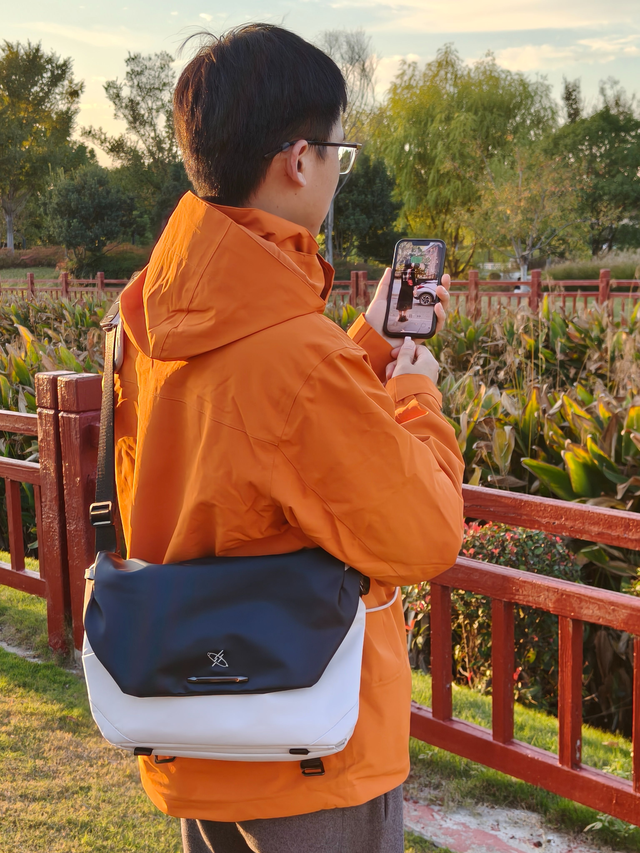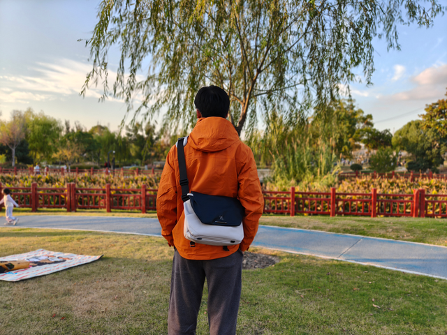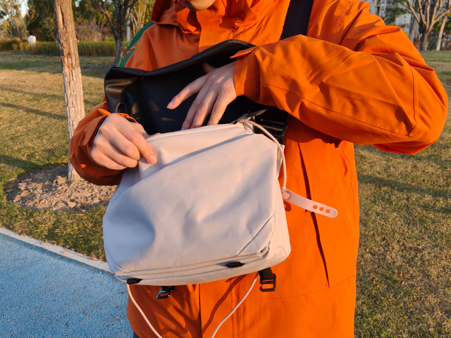 关键的是像我们现在秋冬季出门,日常总是要搭个冲锋衣啥的,这款星云2斜挎包直接背上,直接把出门想要用到的东西都能全部带上,而且包包整体质感在线,背上出街啥的显得本人也是阳光的样子,这整体的搭配的颜值我还是非常满意的。