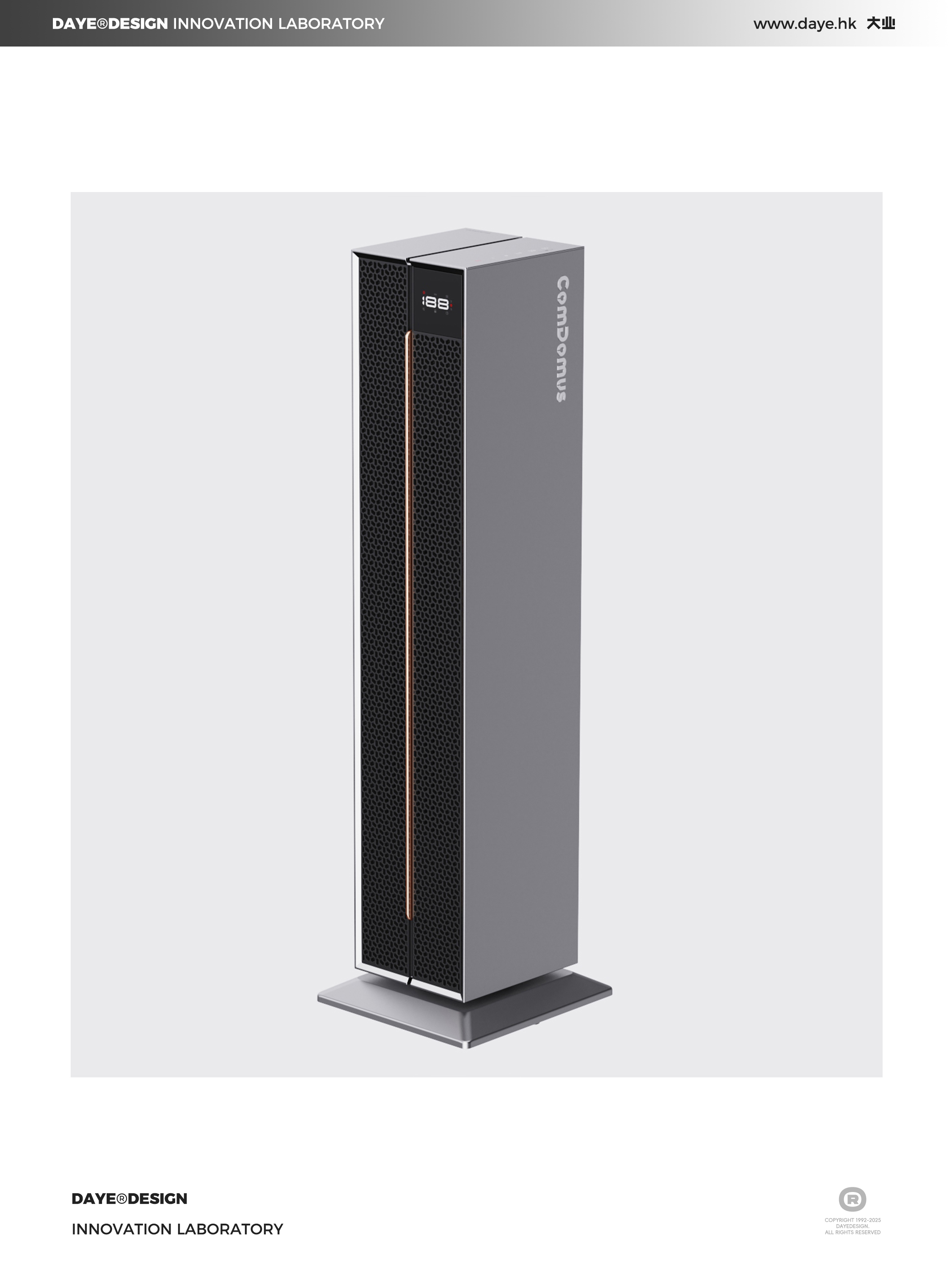 整体遵循模块化几何块面造型,规整的立方体结构既契合现代家居的空间美学,又通过 “分层模块” 的设计逻辑清晰划分功能;机身的硬朗线条强化了科技家电的 “精密感”,同时为供暖的风道设计预留了合理空间,实现 “形态美学” 与 “供暖效率” 的双向统一。