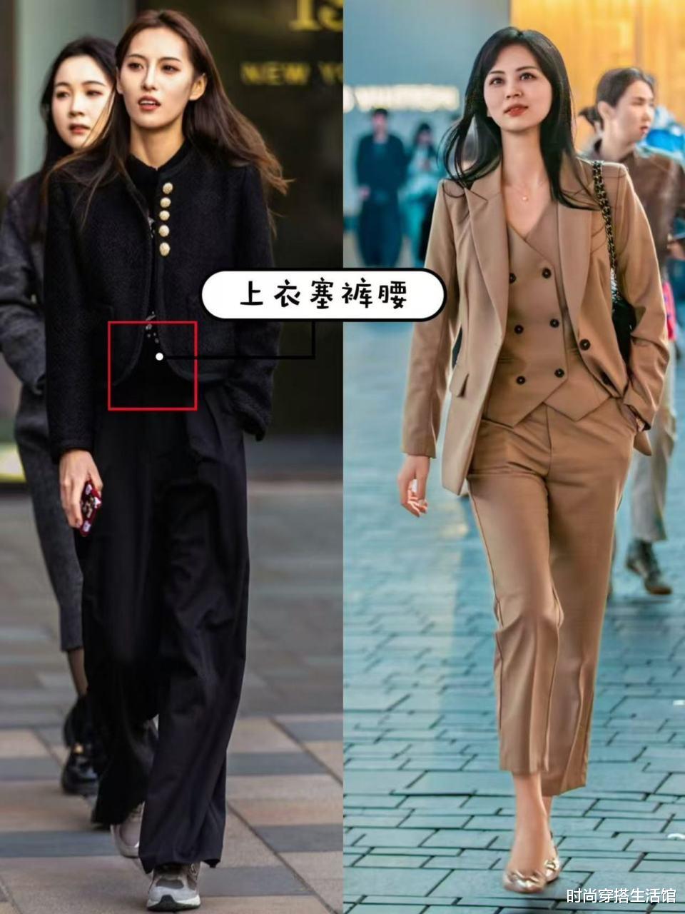 其次关于上衣塞裤腰的方式更适合小个子穿,同时也是显高的方式之一,尤其是像上衣过长的时候,我们选择塞裤腰的话会让上衣搭配变得更加干练和利落。