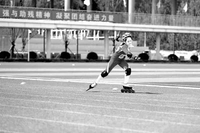 2025年山西省特奥滚球特奥轮滑比赛中,运动员奋力冲刺。李勇摄/光明图片