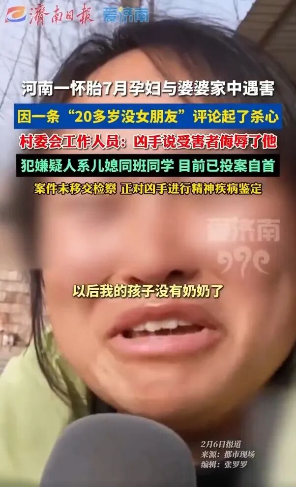一句“这么些年了,你还没个女朋友”的评论,成为一把尖刀,刺向曾在初中同窗五年的同学。案发后,凶手有意绕行、躲避监控,最终两条生命因此逝去,其中包括一名怀孕7个月的孕妇。