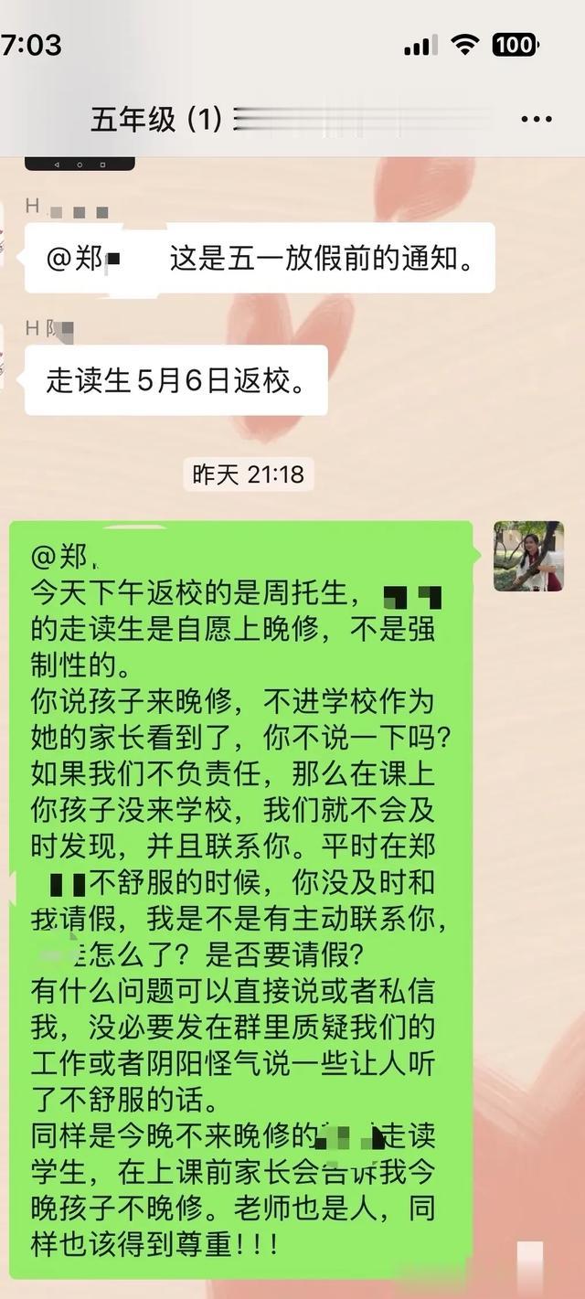 我还遇到过问我一堆事情,我说可以看群里通知,直接去投诉我态度不好的家长,他意思是我不私信专门通知他就是不尊重他,他是大忙人没空看群里的消息。