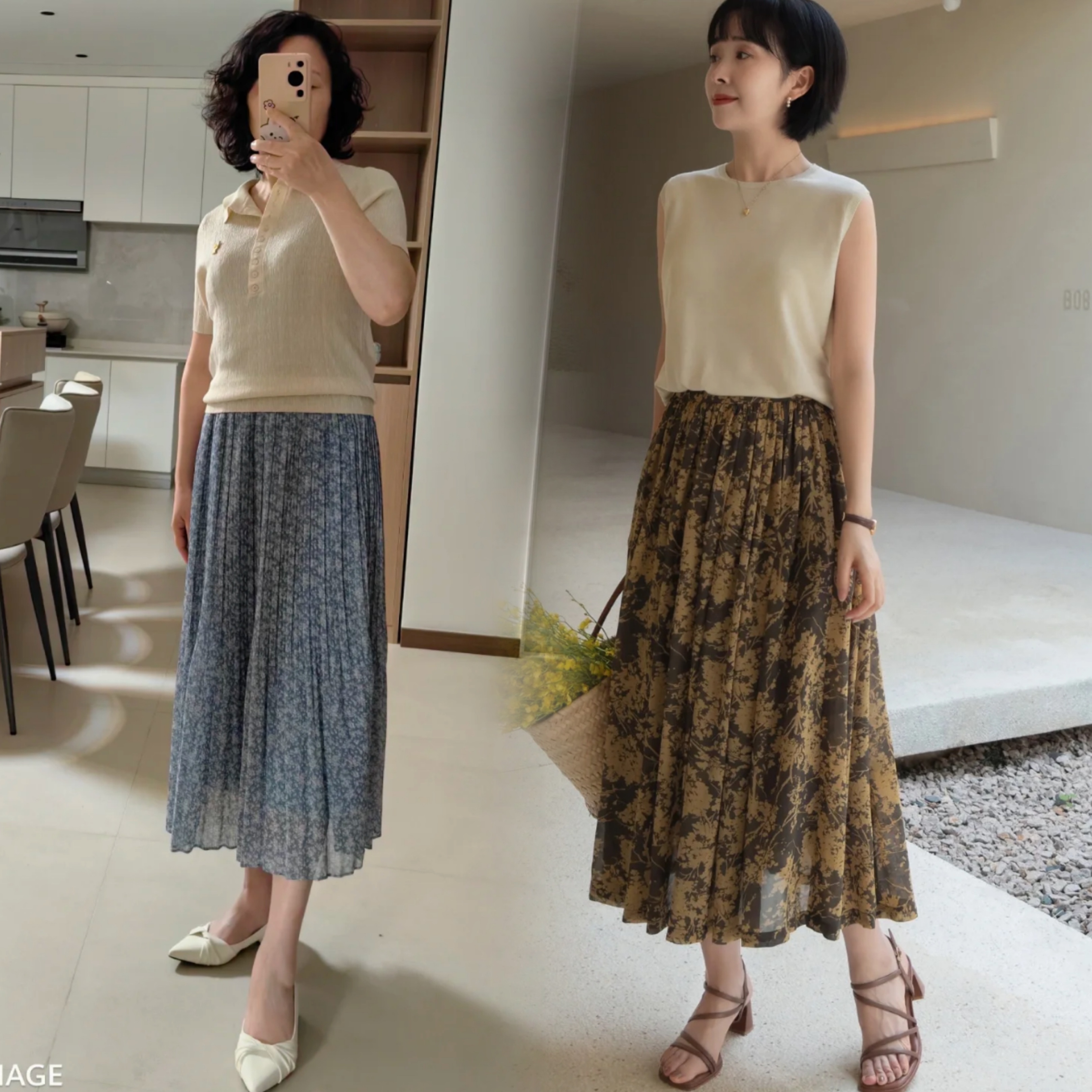 进阶方案:可以穿碎花元素的半身裙,但色彩要低调,搭配纯色针织衫或T恤,用"上简下繁"平衡视觉;但T恤颜色尽量选择素色,简繁平衡才能提升质感。
