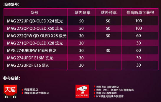 据介绍,即日起至6月18日,购买微星指定型号显示器,不仅可享显示器国家能效补贴,更能叠加微星专属晒单活动。