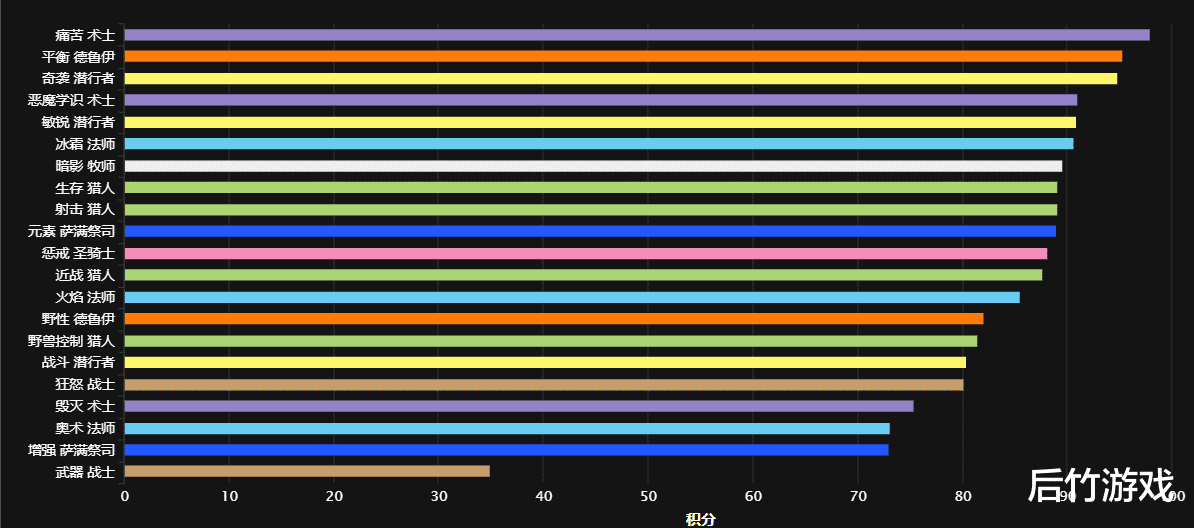 然后是第三周的安其拉神庙职业输出排名露露,第三CD基本进入稳定期,整体变化不大,痛苦术依然第一,其次是平衡德、敏锐贼。