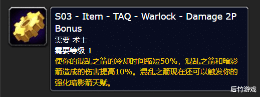 - T2.5输出2件套触发强化暗影箭天赋,将获得26次额外充能(不能与暗影烈焰触发的充能叠加)