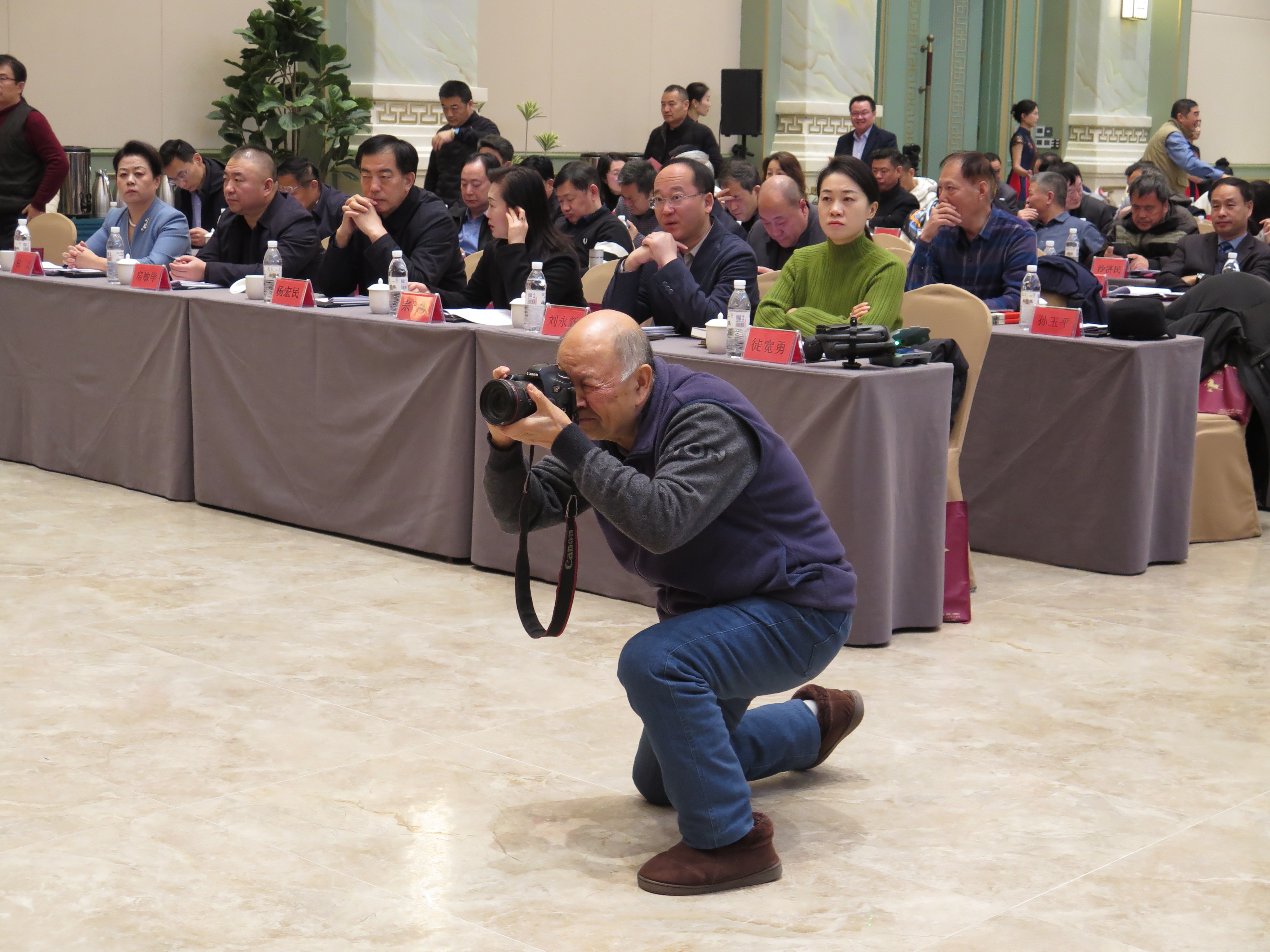 日前,山东黄河文化经济发展促进会在泉城欧乐堡坤河国际酒店举行。会场上活跃着十多位摄影摄像者,长枪短炮无人机悉数上场。然而,最引人注目的,还是一位长者。只见他挎着一台单反相机,时而举机拍摄,时而快步穿梭于摄影人之间,寻找着最佳拍摄位置与角度。