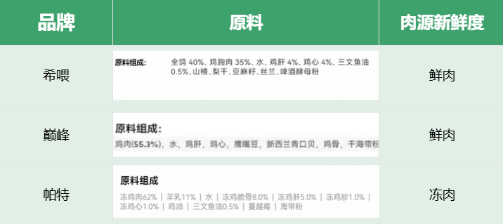 为此,我选取了三款市场热度比较高的产品,用我所学的专业知识并结合专业数据,从原料、营养成分、性价比三个方面进行横向对比,为大家提供真实客观的参考。