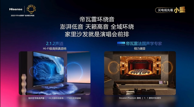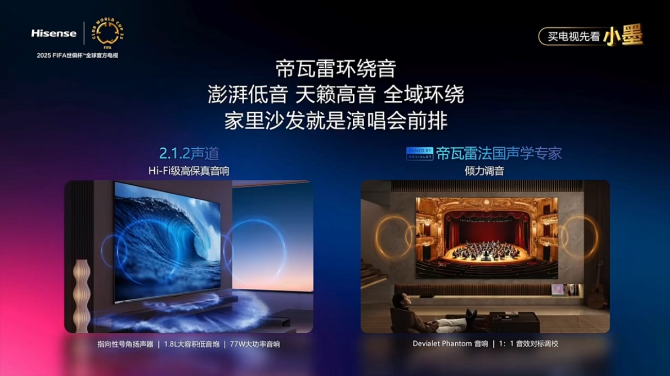 与法国帝瓦雷国宝级音响品合作牌,在超薄电视上实现了HiFi级音效。硬件方面备了2.1.2声道的HiFi高保真音响系统。