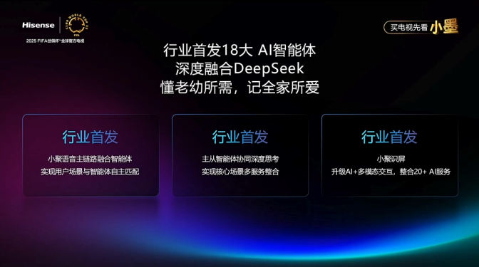 海信小墨E5Q Pro深度融合DeepSeek,配合智能体,海信小墨E5Q Pro带来懂老幼全家的智能多模态服务,简单的指令即可操作电视,通过对话能为用户提供所需讯息与节目。