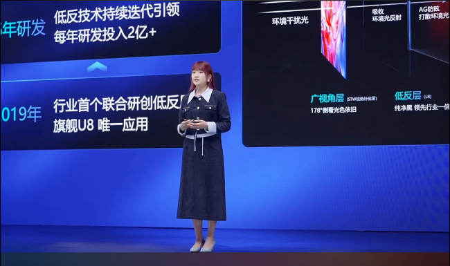 AI高精控光像素级精度提升,增强景深;搭载AI全维度感知等多重算法;视觉补偿层及负性液晶技术,有效解决了普通屏幕因环境光引起的泛白、阴影、视角偏差和清晰度下降的问题;墨镜屏有更高级的磨砂质感,减少环境光线对屏幕显示的干扰,色彩更加纯净饱满,实现客观画质与主观观感的极致平衡,特有的结构不仅低反光抗眩光,还保持了高清晰度、对比度和全视角,实现了显示效果的全面提升。