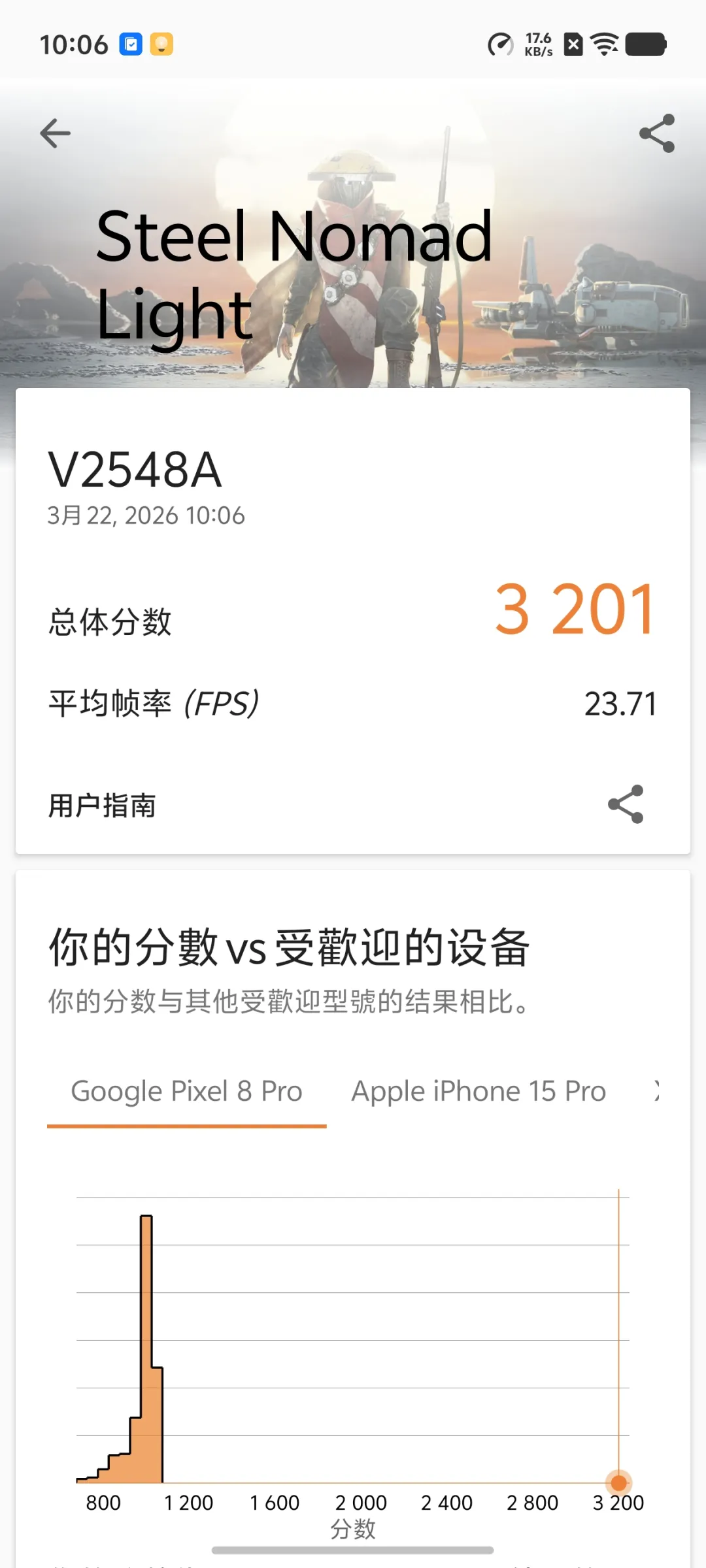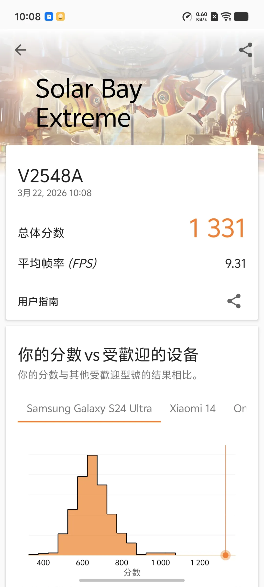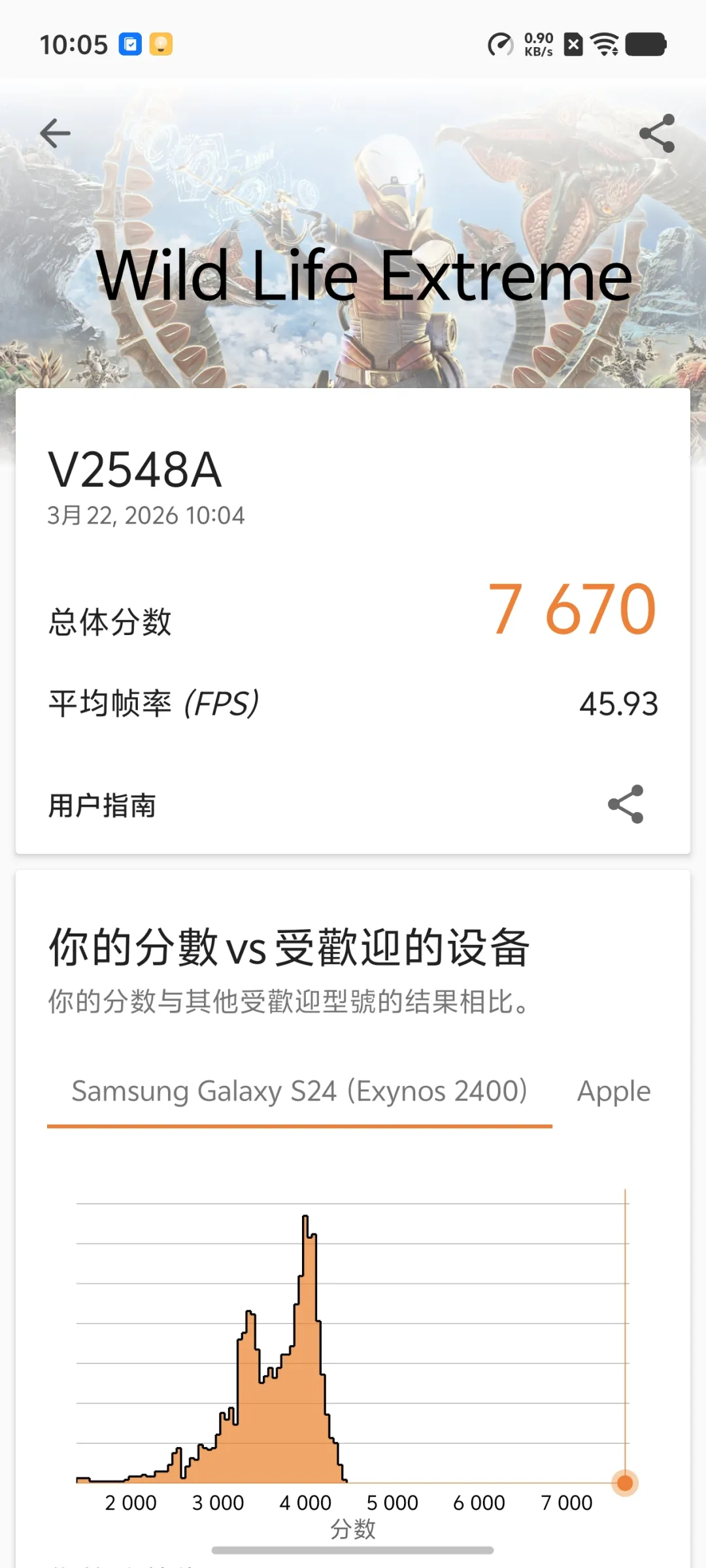 vivo X300s的3D Mark Wild Life Extreme成绩
