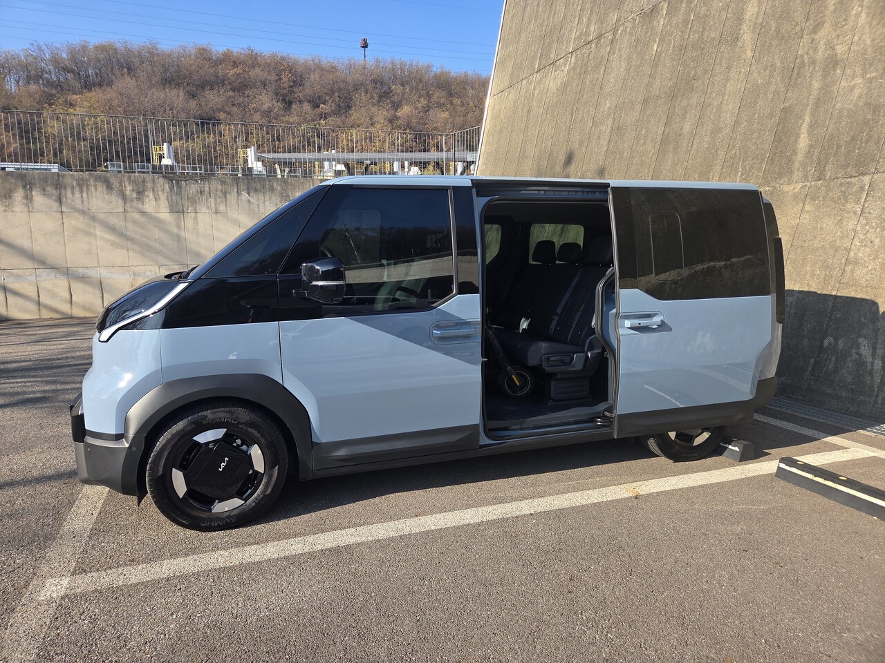 在 1-3℃的实际行驶测试中,能源消耗效率达到 4.7km/kWh,尤其悬挂与轮胎的搭配设定值得高分。轮胎标配电动车专用锦湖轮胎 Crugen EV HP71,轮毂设计与 PV5 适配度很高。