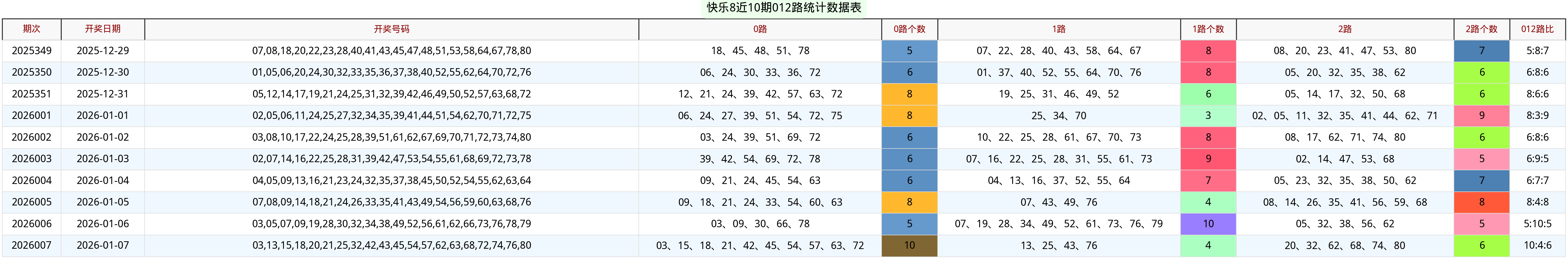 2026008期快乐8关键指标深度分析1. 012路走势分析