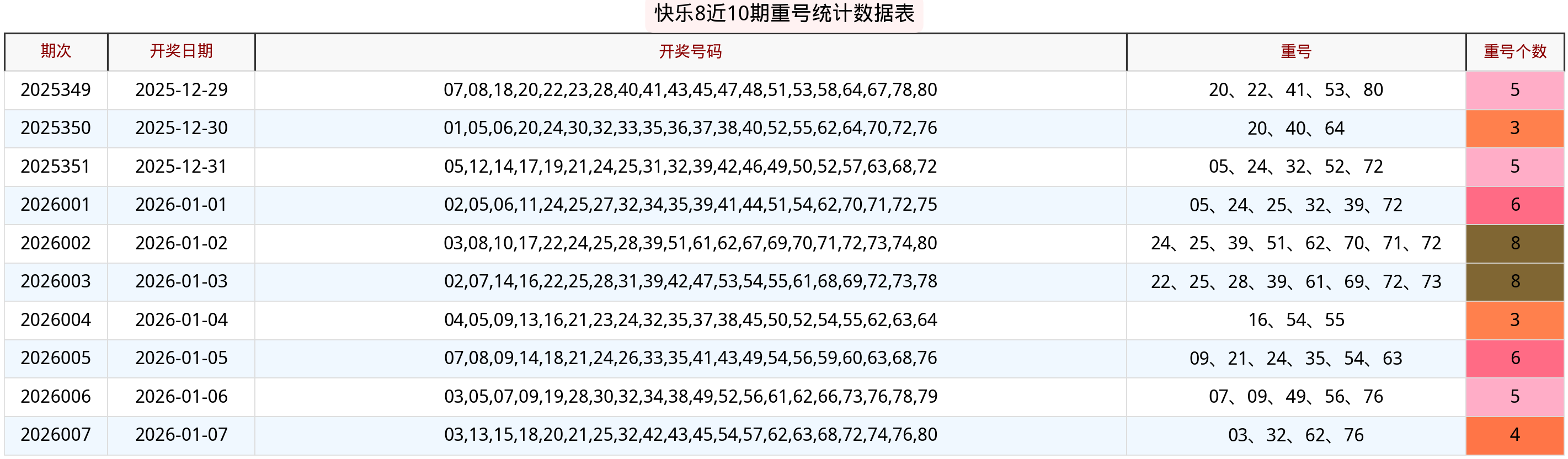 近五期重号个数变化:8 → 3 → 6 → 5 → 4