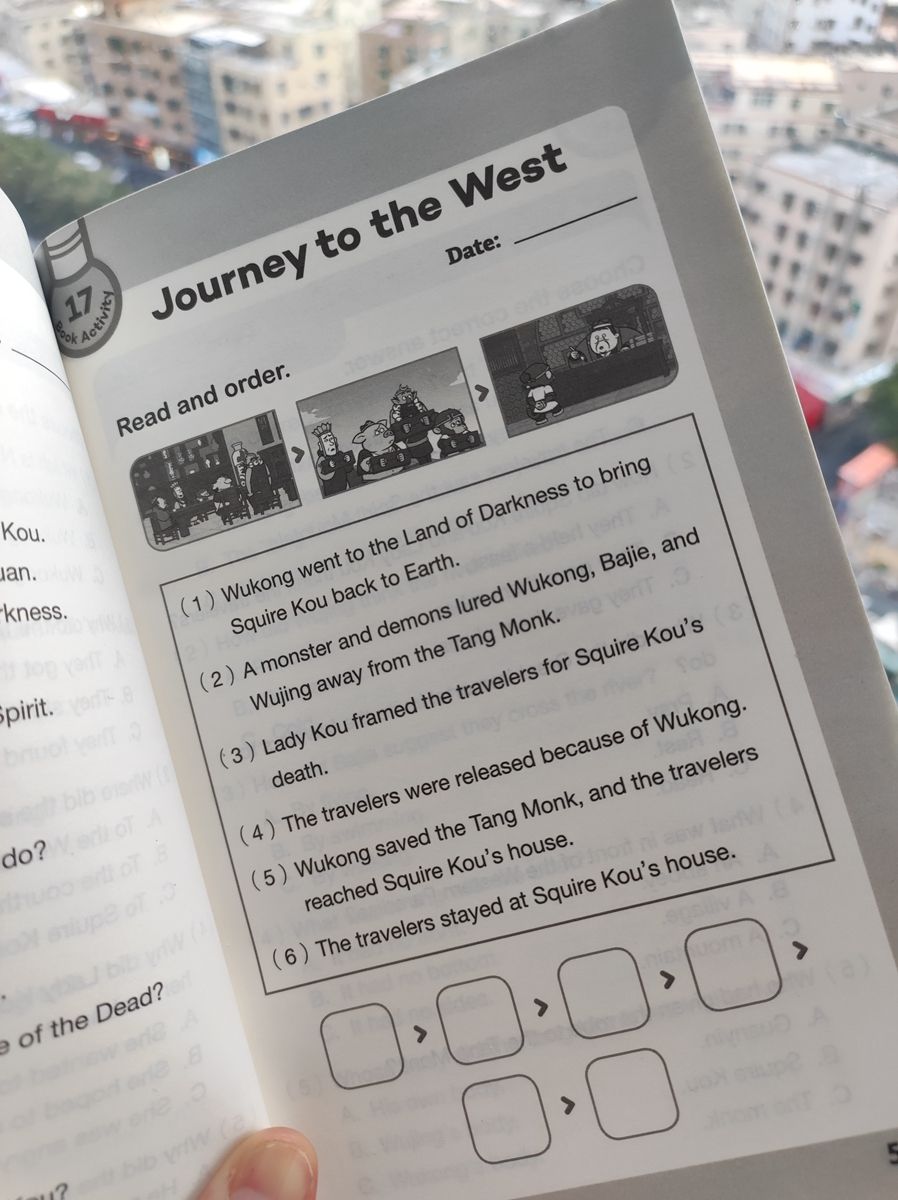 因为孩子对《西游记》剧情很熟悉,所以读英文版时,即便遇到不认识的单词,他也能猜出意思。