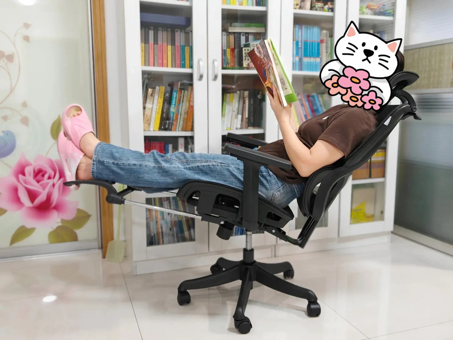 后仰时坐垫会同步前移约15cm,大腿压力分布均匀,对腿部友好。整体支撑稳定扎实,但因为不是网布材质,透气性一般。