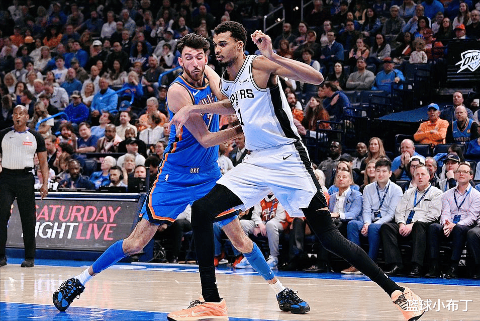 只要他站在禁区里,对手的突破和上篮都会变得小心翼翼,不敢轻易往里闯。本赛季他的盖帽数、防守效率长期霸榜联盟,防守效率高达102.3,排在联盟第7位,是马刺防守体系的绝对基石。更难得的是,他的防守不局限于内线,还能靠着灵活的移动能力,偶尔对位外线球员,这种全方位的防守覆盖,让马刺的防守体系变得更加完善。